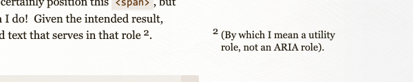 If reference targets are something you think would be useful in your own work, please give it a try in Chrome or Safari or both, to see if your use cases are being met. If not, you can leave feedback on issue 1120 to share any problems you run into. If we’re going to have a Shadow DOM, the least we can do is make it as accessible and useful as possible.