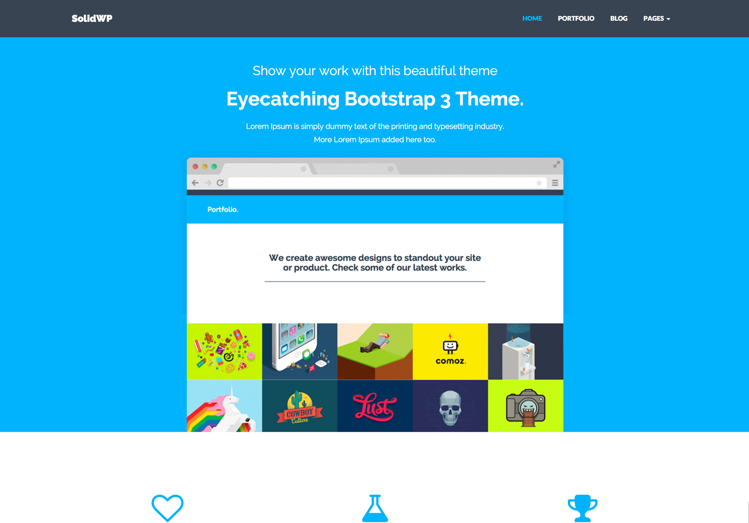 SolidWP is a nice Bootstrap WordPress theme with a lot of built-in features and page templates. The theme includes a theme options panel to manage different settings and custom homepage layout variations.