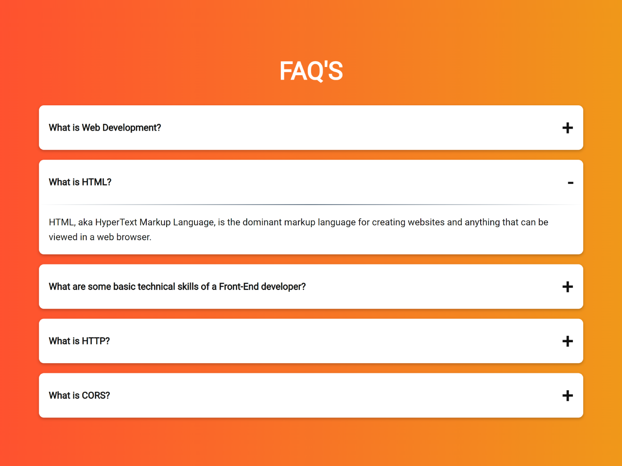 You’ve successfully created an FAQ accordion for your website using HTML, CSS, and JavaScript. Users can now easily find answers to their frequently asked questions in an interactive and user-friendly format. If you have any questions or suggestions, feel free to comment below.