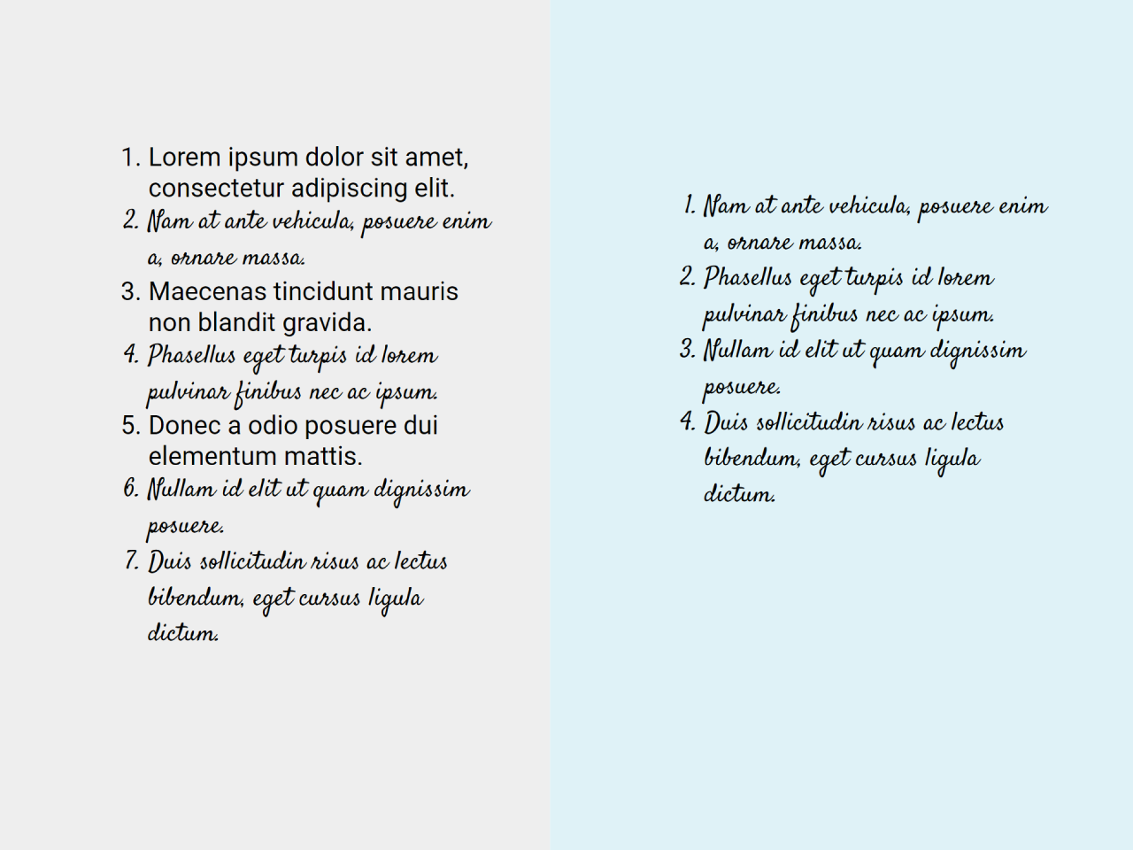 <li class="especial">Nam at ante vehicula, posuere enim a, ornare massa.</li>