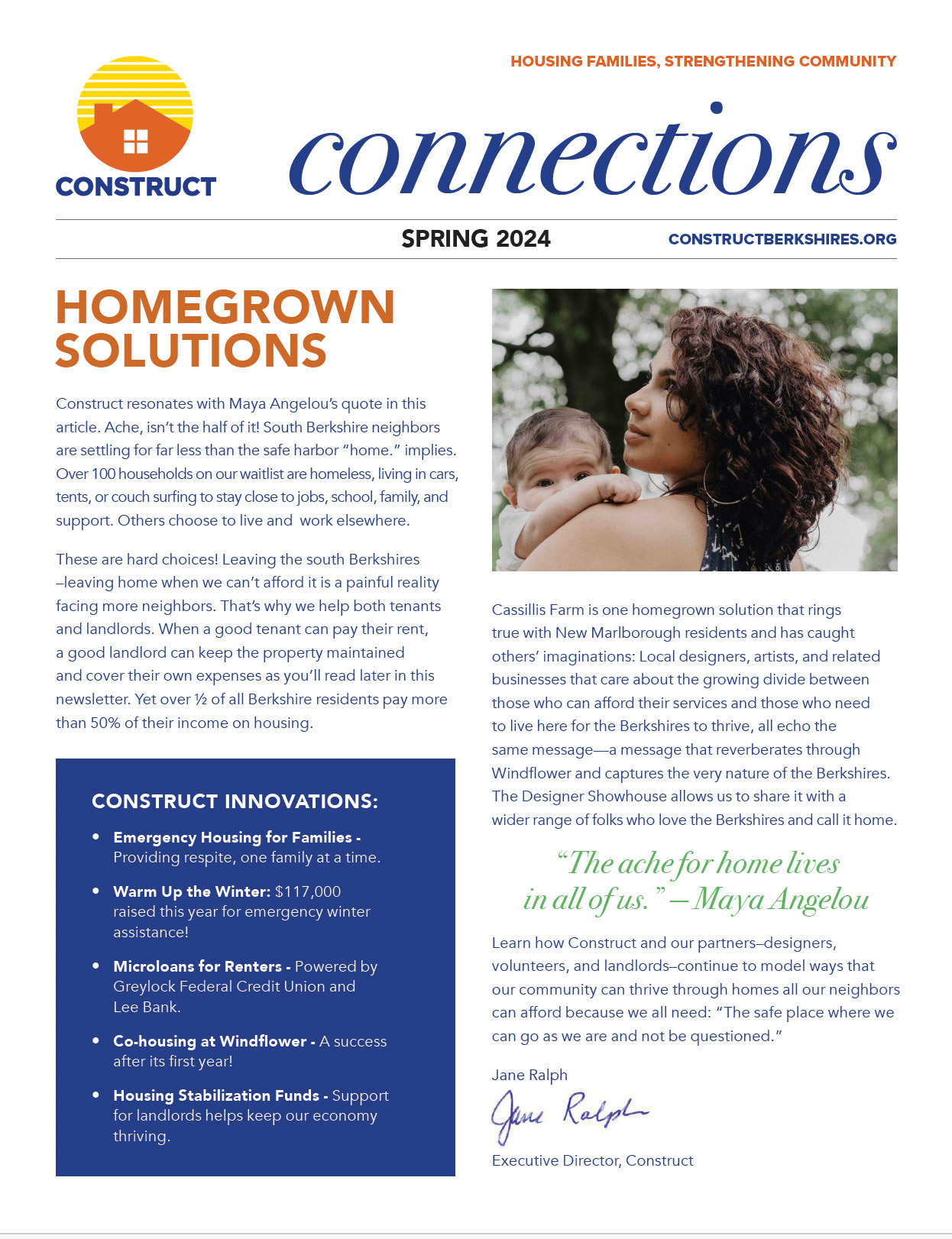 For 52 years, Construct’s mission has been simple: to provide affordable housing to strengthen and diversify communities, stabilize lives, and empower individuals to build a better future. Our newsletters help us build bonds by letting our community know about our latest endeavors, undertakings, and all the good people who participate.