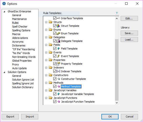 Well, let’s crack open the T4 template for generating a method header. Recall that you do this in Visual Studio by selecting Tools->Ghost Doc->Options, and picking “Rules” from the options pane.