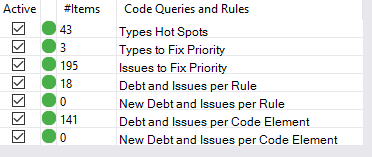With that turned off, I run an analysis and open the “debt and issues per rule” query again. I see the following.