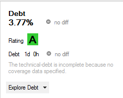 No more “avoid methods with name too long” in the debt computation. Oh, and while I’m checking the effects of that, take a look at my new debt grade.