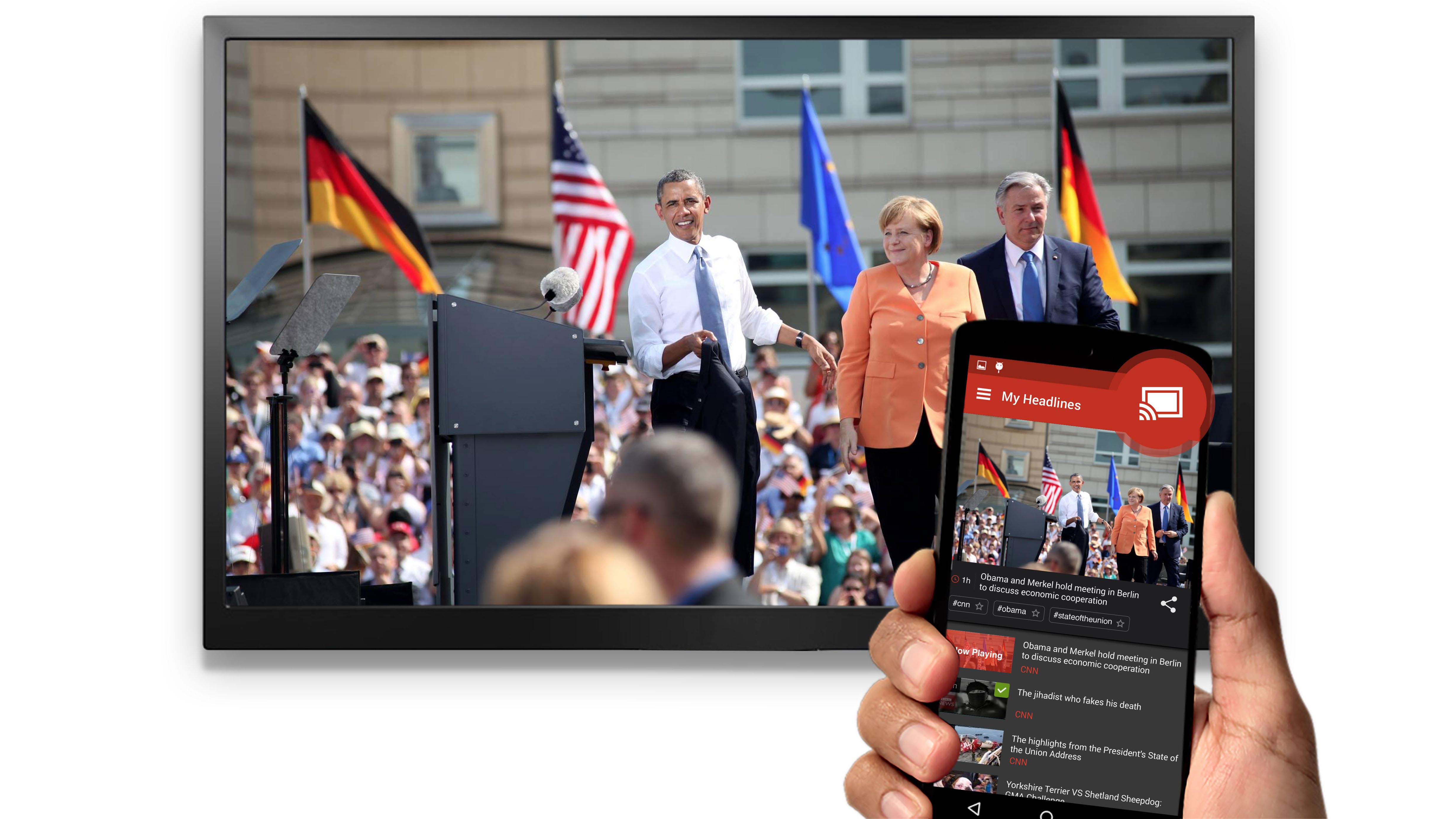 The Google Cast SDK enables you to extend your Android, iOS, or Web app to direct its streaming video and audio to a TV or sound system. Your app becomes the remote control to play, pause, seek, rewind, stop, and otherwise control the media.
