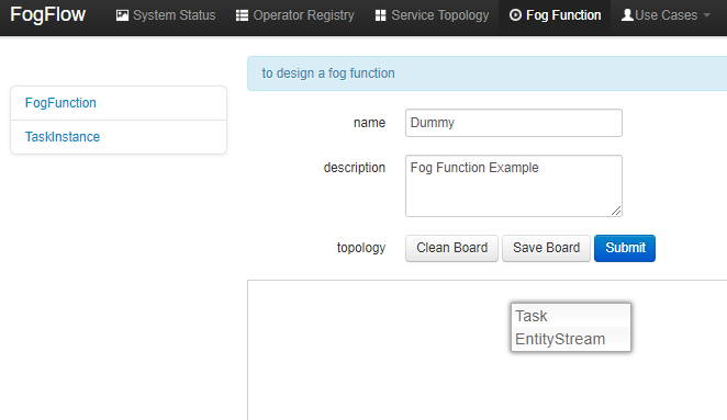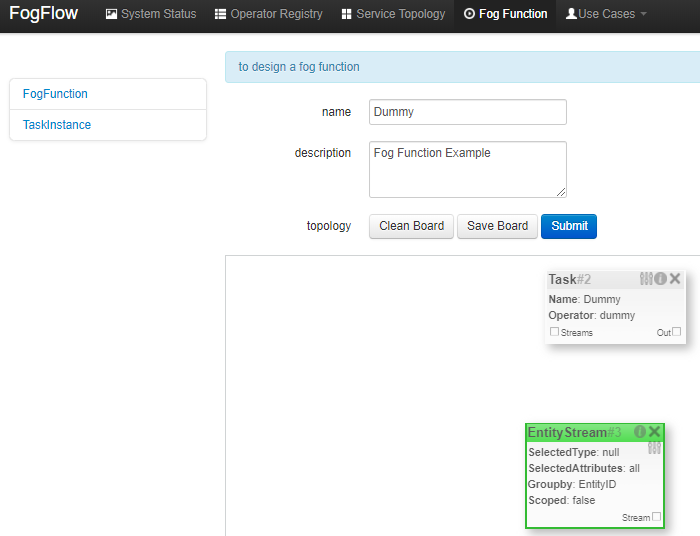 - EntityStream: is the input data element which can be linked with a fog function Task as its input data stream.