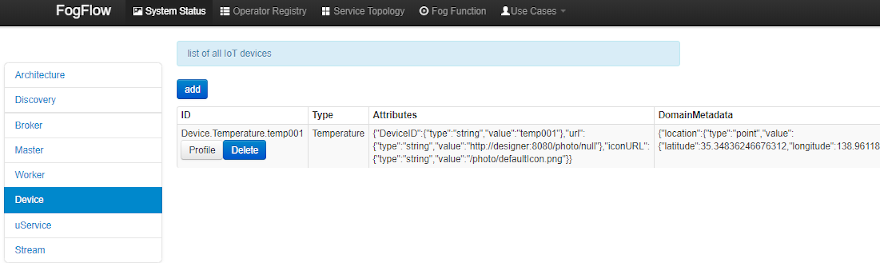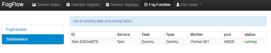 - Check the system status from the FogFlow DashBoard at