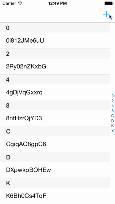 Check the TableViewControllerWithSections Demo for an example of this, were we have an sectioned UITableView of names, where each section is defined by the first letter of the name, just like the Contacts app!