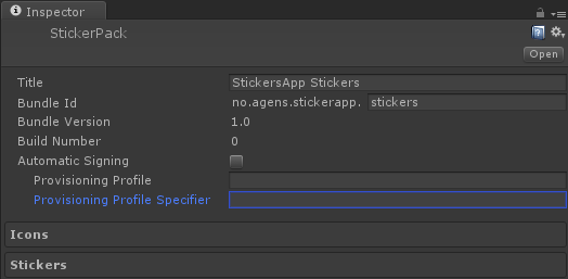 If you have trouble with signing issues in Xcode or are using automated builds, then its a good idea to specify the name of the provisioning profile directly in the sticker pack.