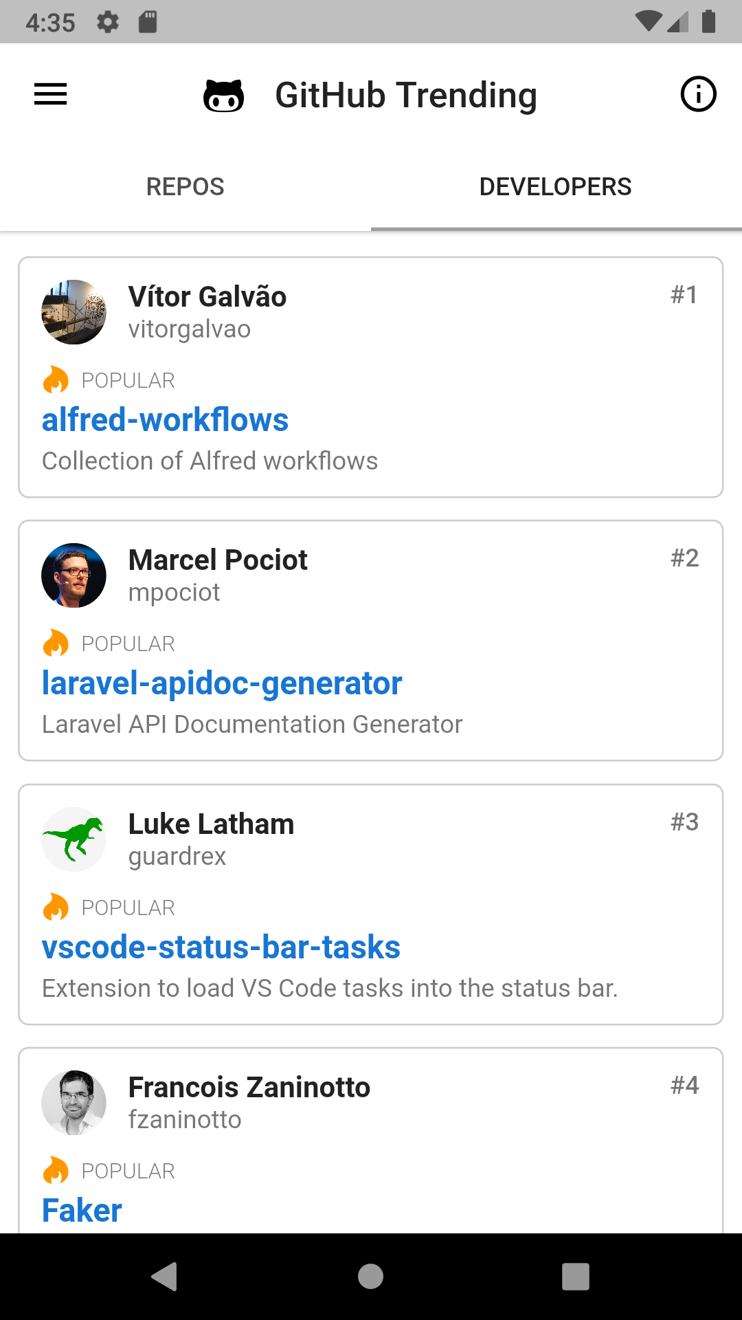 GitHub Trending by Ayush P Gupta A Flutter based project to view the trending repo(s) and developer(s).