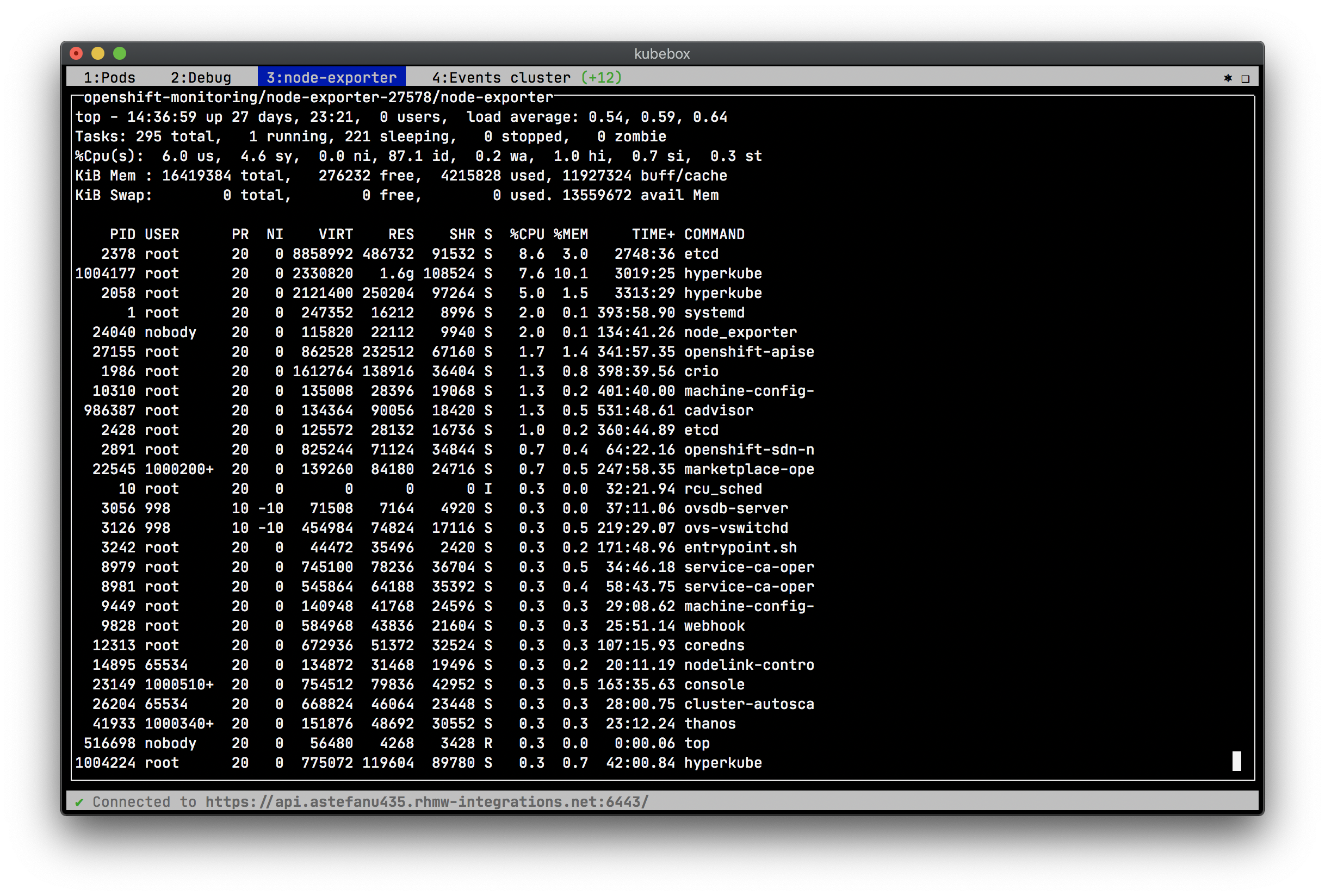 $ curl -Lo kubebox https://github.com/astefanutti/kubebox/releases/download/v0.10.0/kubebox-linux && chmod +x kubebox
