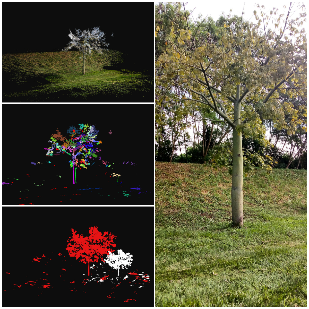 *Note:* This project is a photogrammetric system for dendrometric feature estimation of individual trees. The purpose of this project is to do a 3D reconstruction of an individual tree using Open Multiple View Geometry (openMVG) and get dendrometry estimation (diameter at breast height (DBH), tree crown height, total tree height, crown volume, morphic factor and percentage canopy missing) of a stem tree. For that, were used OpenMVG and PMVS for 3D Mapping, a circular pattern for scale factor estimation, PCL Library and DBScan for segmentation and Euclidean distance for dendrometric feature estimation.