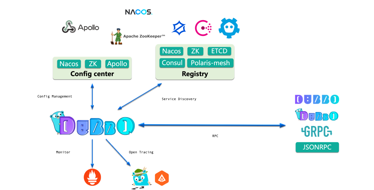 - Registry: Nacos, Zookeeper, ETCD, Polaris-mesh, Consul.