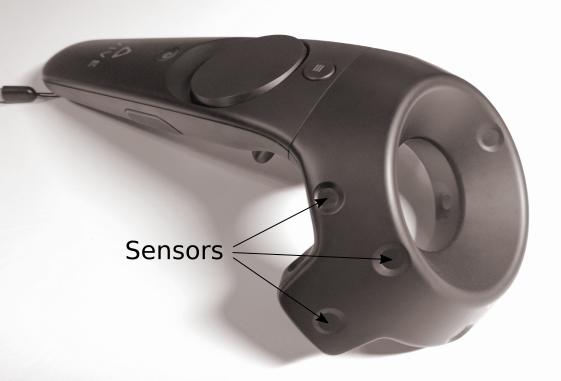 In the HTC Vive system, each device also has an IMU (Inertial Measurement Unit) which is used to determine the high frequency pose changes that are too fast or minute to reliably capture with the light-based tracking method.