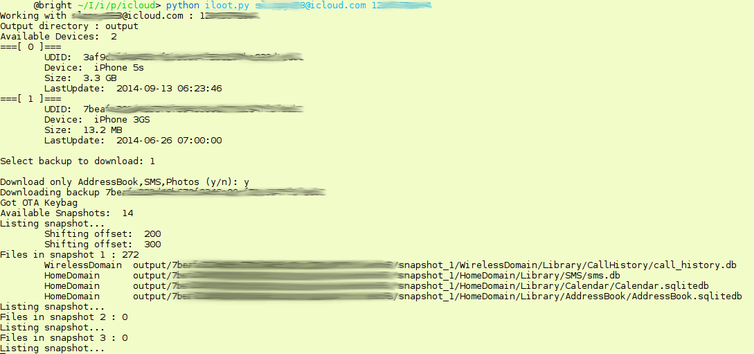 Using this CLI tool you can download backups of devices assigned to your AppleID. Based on iphone-dataprotection script, so copyrights belong to respective owners. Offset operations added and other minor bugs fixed. Thanks to dlo for his additions.