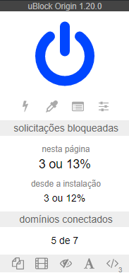 O uBlock Origin NÃO é apenas um "bloqueador de anúncios": é um bloqueador de amplo espectro. O comportamento padrão do uBlock Origin quando instalado é bloquear anúncios, rastreadores e sites de malware -- através de várias listas de filtros como EasyList, EasyPrivacy, Peter Lowe’s ad/tracking/malware servers, sites de malware e as próprias listas de filtros do uBlock Origin.