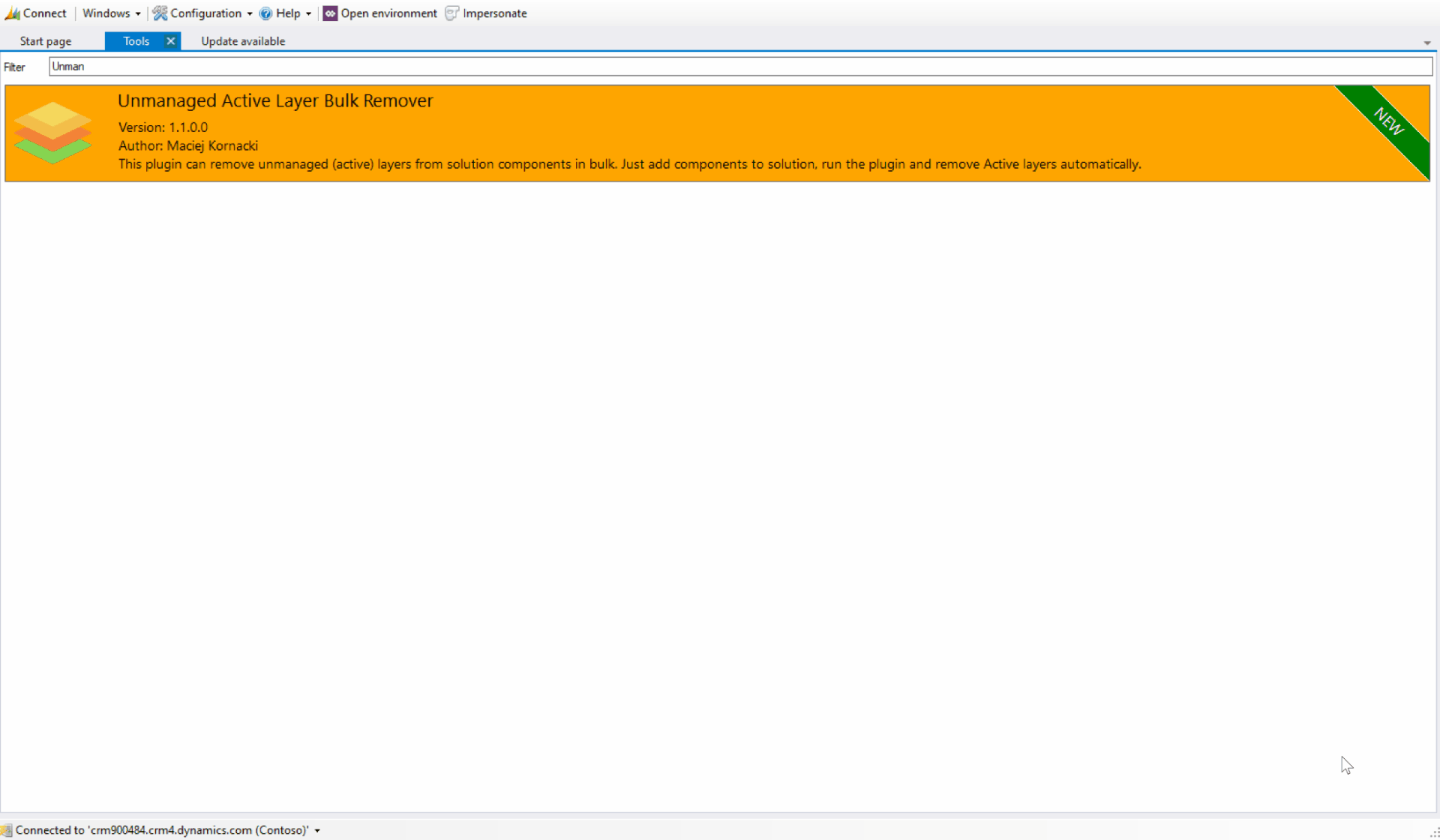 Make sure you add only those components to the solution, which you want to remove unmanaged (active) layer from. You can narrow it down with a use of filter box (which is especially useful when you add attributes, but you want to exclude entity component type). When you click remove active layers, plugin will iterate through all components added to the solution and which are selected in the filter box and for each it will execute Remove Active Customizations action.