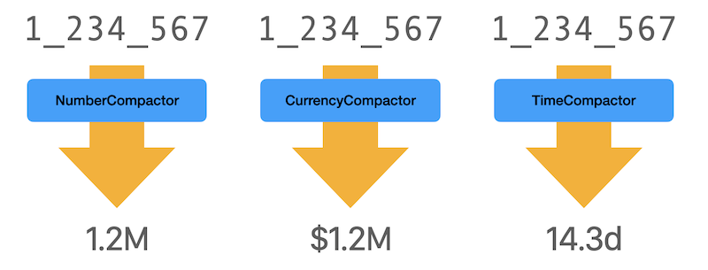 Why SwiftCompactor? First, use where precision isn’t critical, but space is at a premium. Second, compact values like $8.6M are more easily grasped over values like $8,603,842.35, lowering the cognitive load for the user.
