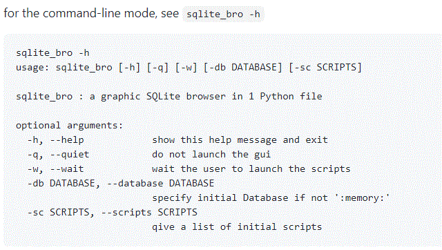 - support supports command-line scripting if Python>=3.2 (see sqlite_bro -h), with or without Graphic User Interface