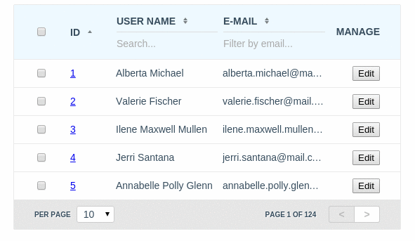 - Fluid configuration allows you to use only the features you need (sortable, filterable, selectable, editable, ...)