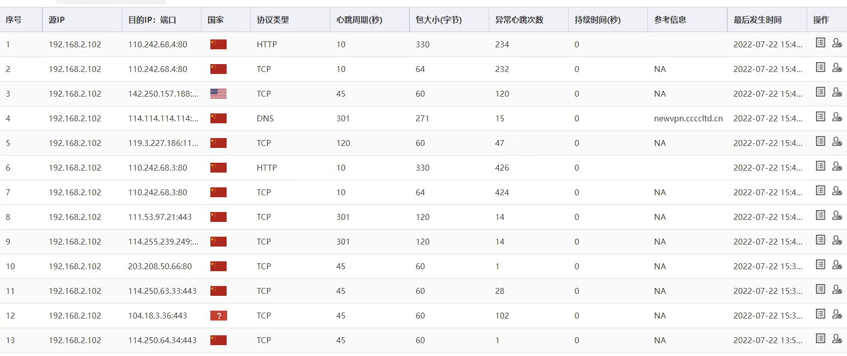 set jitter "20";If you do not set it, an abnormal heartbeat packet alarm may appear. Of course, in most cases, researchers will think it is a false alarm and ignore it. However, for the sake of safety, it is recommended to configure it so that it will not cause an abnormal heartbeat packet alarm. At that time, it was tested by 360 NDR equipment, and the specific effect is as follows: