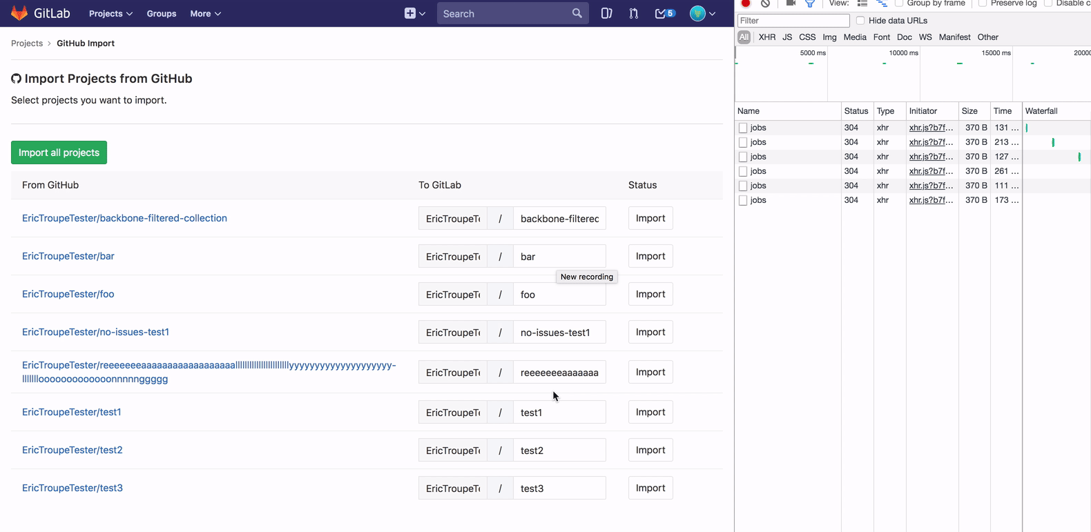 When using OmniAuth or the social connect option, entering a custom name for a GitHub import won't be respected.