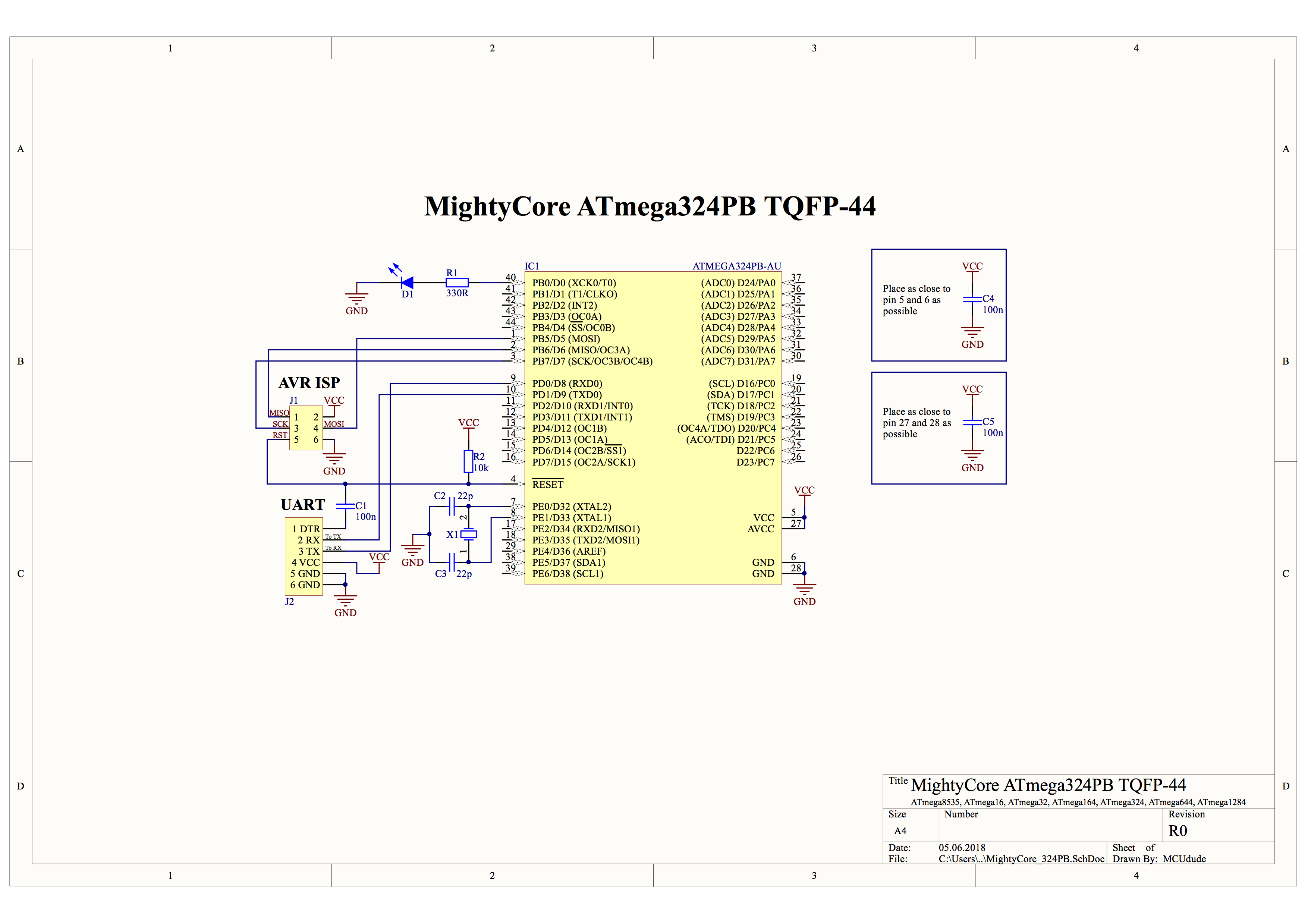 ~- all microcontrollers, two~- 164; 324; 644; 1284, one~- 1284) - IO peripherals written on the underside of the board. No need to search in the datasheet anymore!