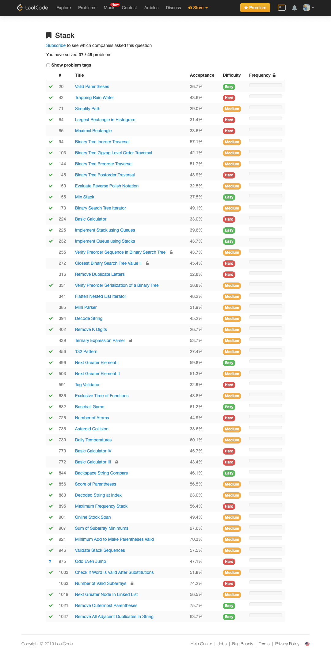 | 0020 | Valid Parentheses | Go | 40.7% | Easy | |