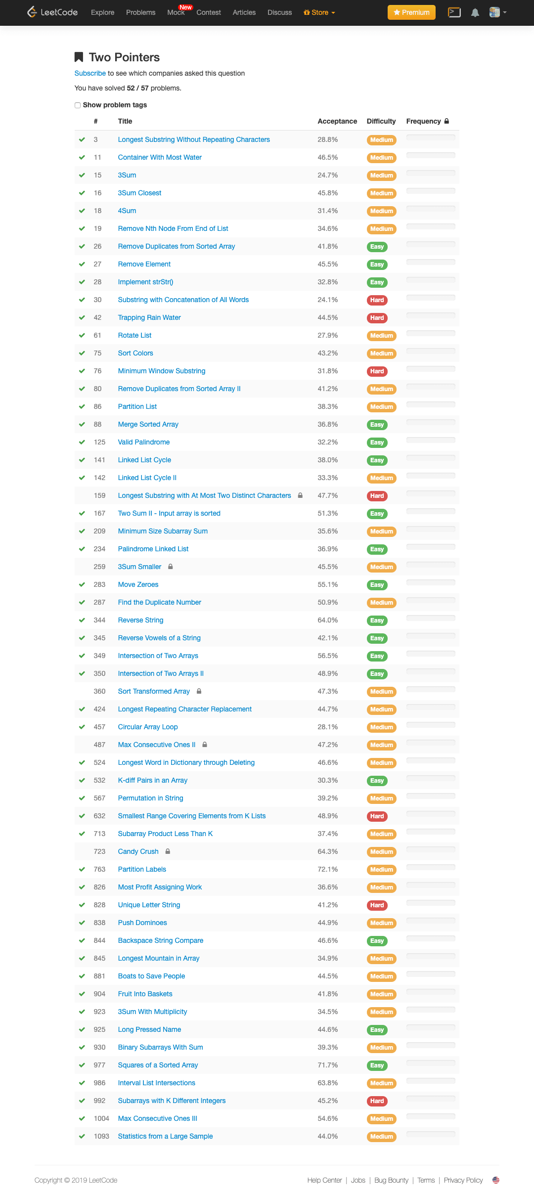 | No. | Title | Solution | Acceptance | Difficulty | Frequency |