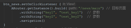 我们在之前已经依赖了 Arouter (详细用法参照:https://github.com/alibaba/ARouter),用它来实现跳转只需要以下两步: