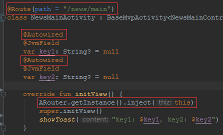 onCreate方法调用ARouter.getInstance().inject(this)注入; - 然后要用
