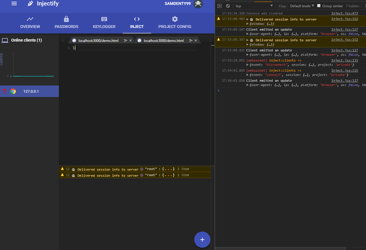 Injectify is a modern web based MiTM tool, similiar to BeEF (although completely unrelated in terms of source code). It features cross-platform clients (Web, Desktop, Browser extension).