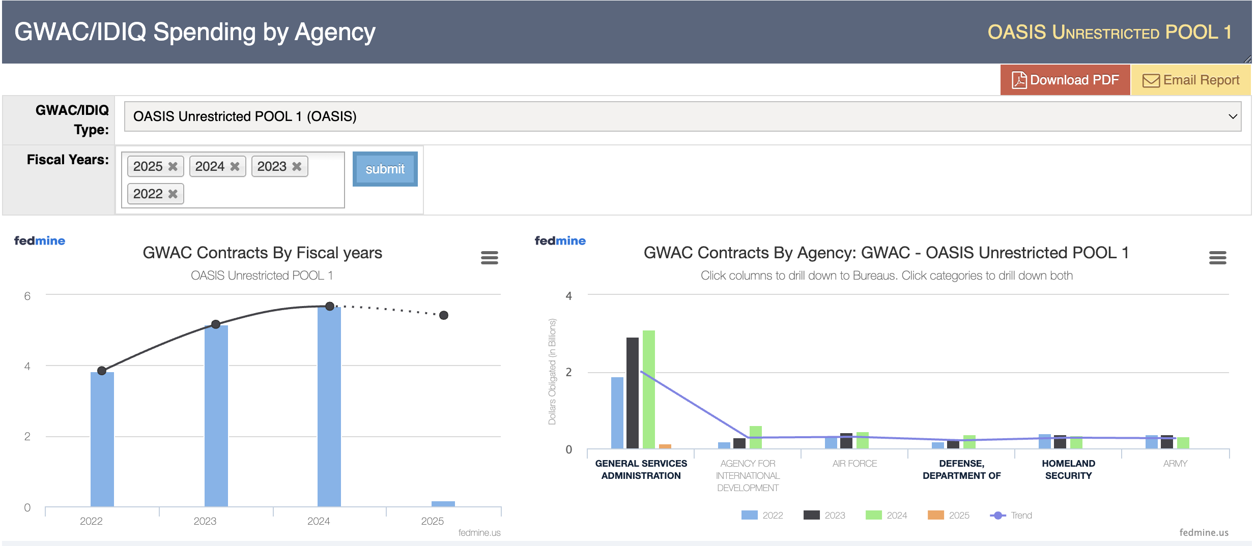 The power of the Fedmine platform lies in the seamless aggregation and integration of 19 federal datasets. By combining this intelligence into a single platform, we deliver comprehensive transparency into federal government contracts, enabling you to make informed business decisions.