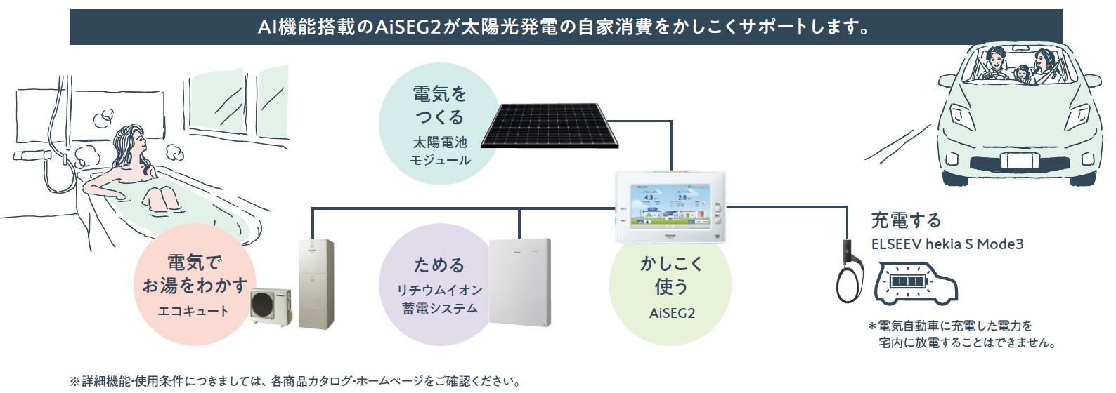 例えば、『AiSEG2』は天気予報や自宅の電気の使用実績などをもとに、人工知能で自家消費をコントロール。