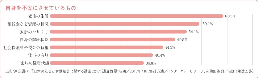 日本労働組合総連合会が行った調査によると、多くの人が『お金』に関わる不安を抱えていることが分かります。