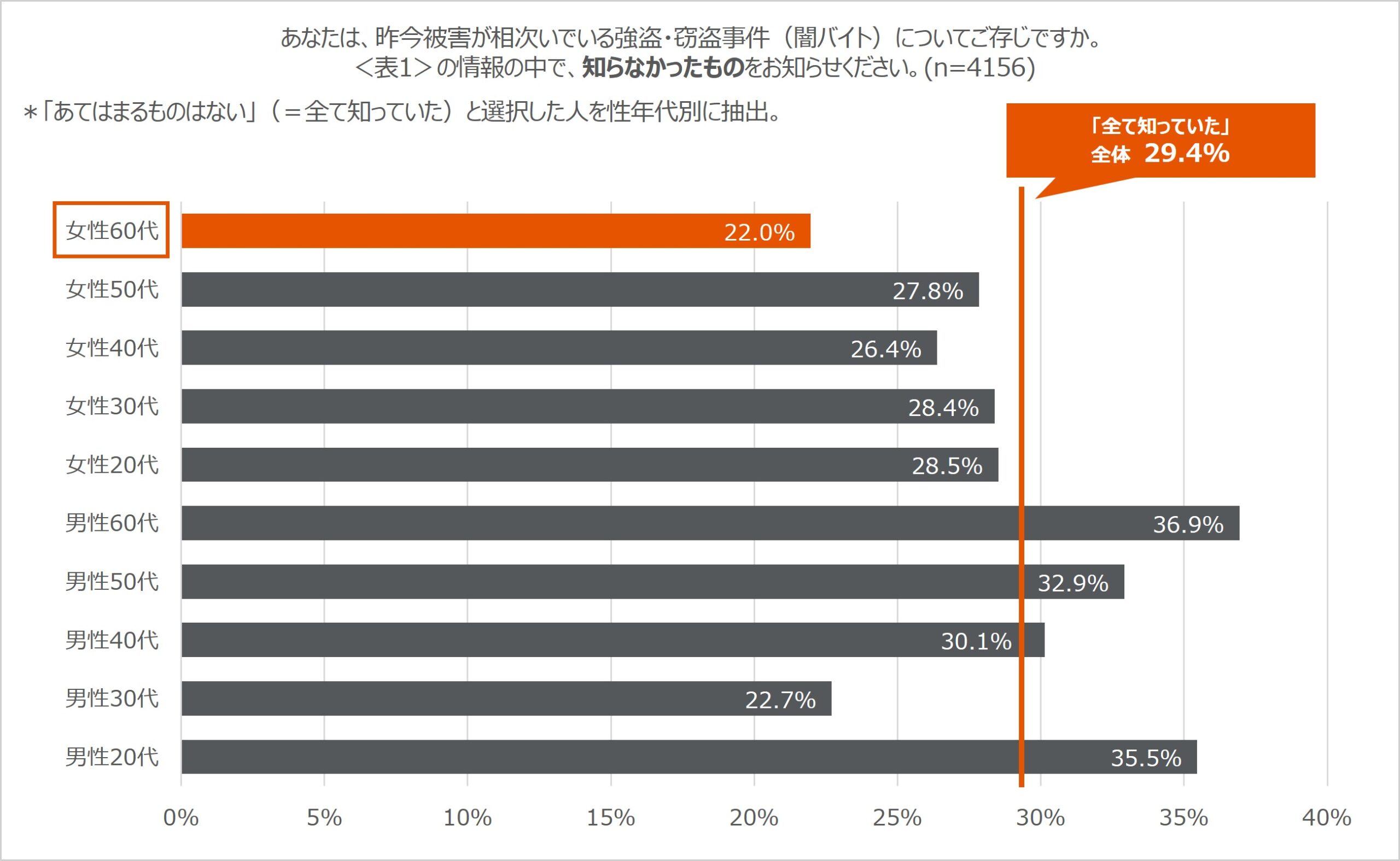また、『家を空けることが少ない(ない)』という理由で、『自宅の防犯対策をしていない』と回答したのも、60代女性が最多でした。