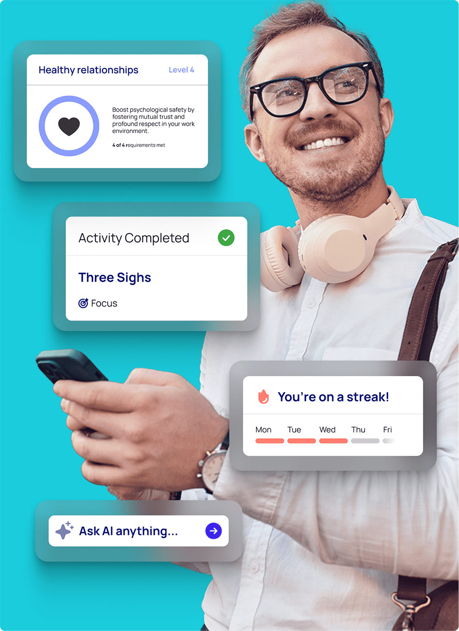 Headversity works at both levels at the same time. We build the conditions for psychological safety and put waitless support in the hands of every person inside them.