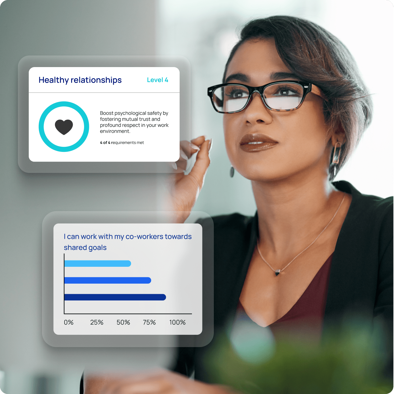 Real data on culture health, engagement, and early risk signals, so you can track results and act early to support your team where they are at.