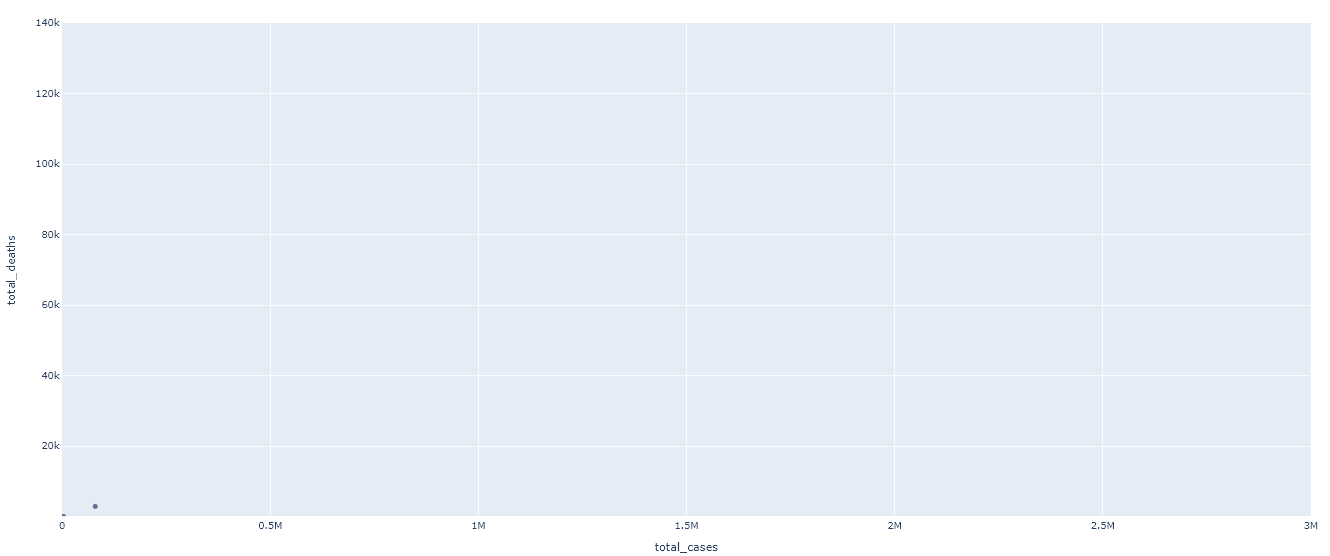 fig = px.scatter(df, x="total_cases", y="total_deaths", animation_frame="date", animation_group="location",