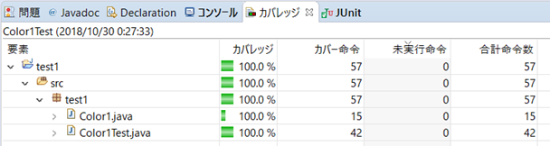 Color1.java(赤線)のカバレッジが86.7%になっています。