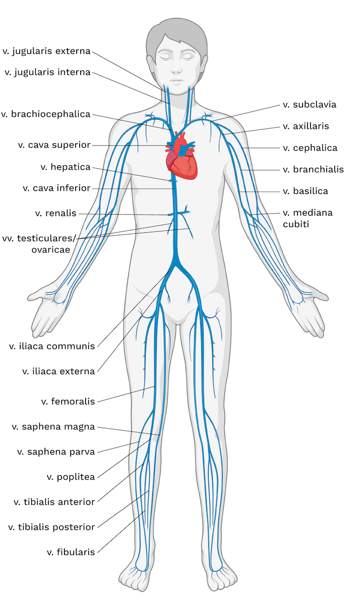 I bryst- og bughulen og i hjernen er der ingen veneklapper, bortset fra den store vene, der fører blodet fra hjernen til c. cava superior (vena jugularis interna). Her føres blodet opad ved hjælp af de ændrede trykforhold, der opstår, når vi trækker vejret, og ved trykreduktionen i forkamrene ved sænkningen af klappeplanet. Fra de dele af kroppen, der er placeret højere end hjertet, påvirkes veneløbet af tyngdekraften. Trykket her er derfor lidt mindre end i venerne i underekstremiteterne, og årevæggen er endnu tyndere. Et hæmodynamisk særtilfælde findes i portvenen i leveren (vena portae), hvor media-muskulaturen fører blodet mod leveren i regelmæssige kontraktioner.