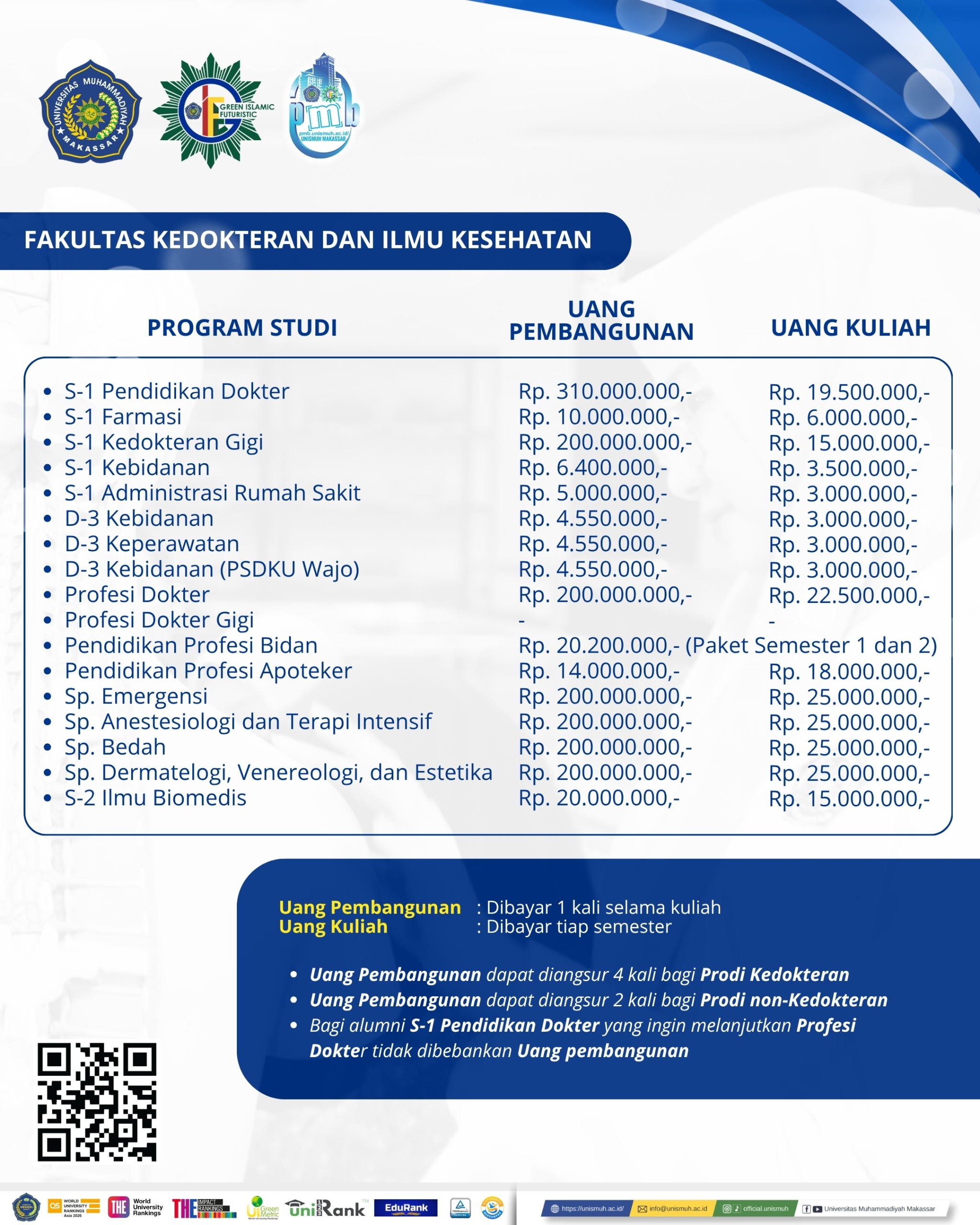 Biaya pendaftaran untuk Pendidikan Dokter dan Kedokteran Gigi (Free Sampai tanggal 1 Maret 2026)