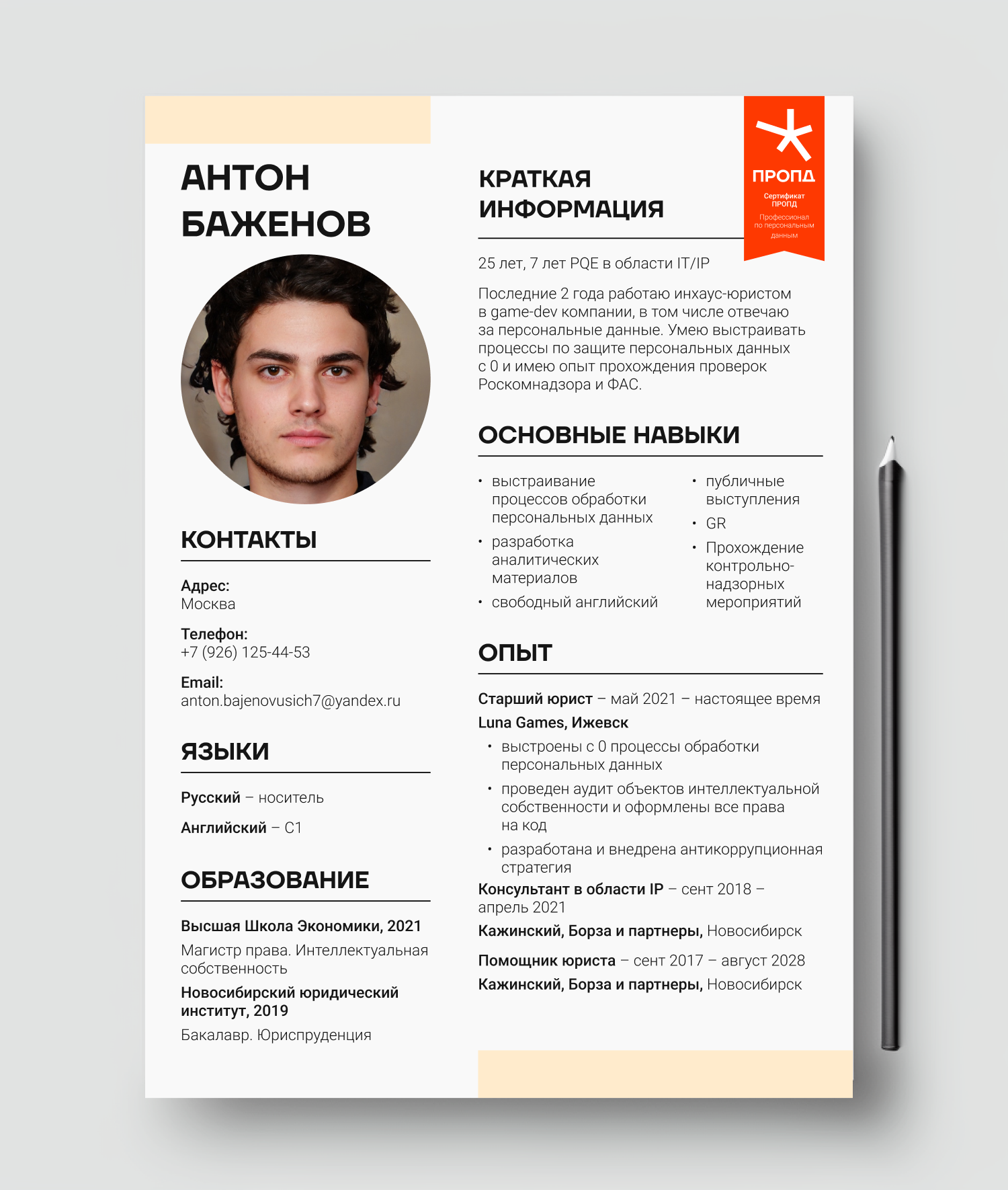 • Руководитель по защите персональных данных в международной ИТ-компании Экс юридический эксперт ГРЧЦ