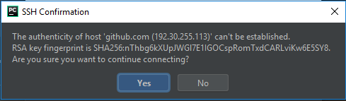 You might get this pop up asking you if you trust te RSA key fingerprint, click Yes