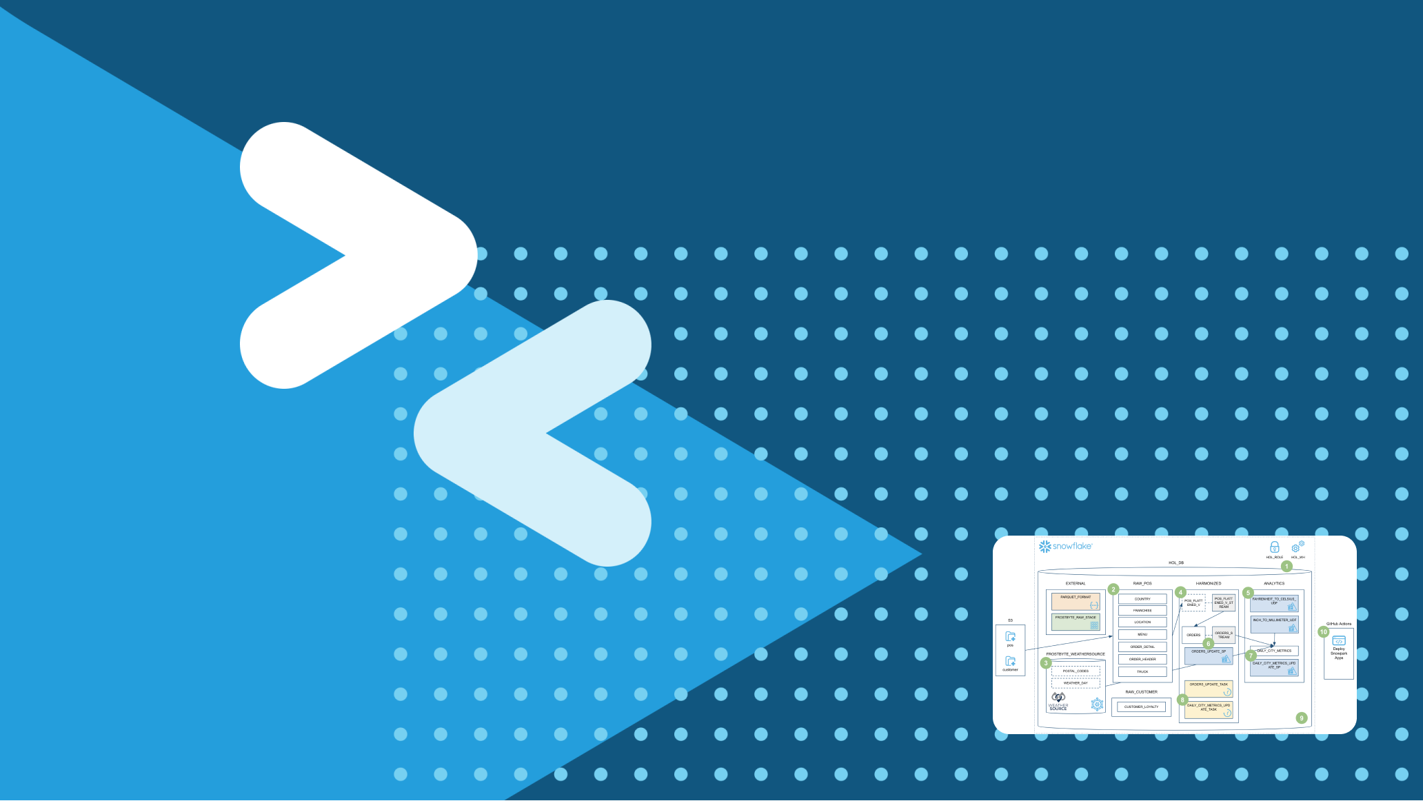 During this step we will be adding new data to our POS order tables and then running our entire end-to-end pipeline to process the new data. And this entire pipeline will be processing data incrementally thanks to Snowflake's advanced stream/CDC capabilities. To put this in context, we are on step #9 in our data flow overview: