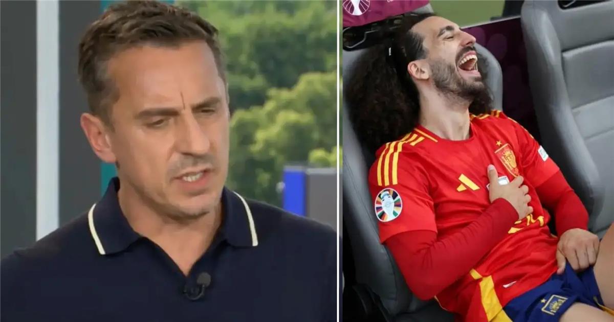 رد مارك كوكوريلا لاعب منتخب إسبانيا الأول لكرة القدم، على أسطورة إنجلترا، جاري نيفيل، بعدما انتقده قبل نهائي اليورو بين المنتخبين.