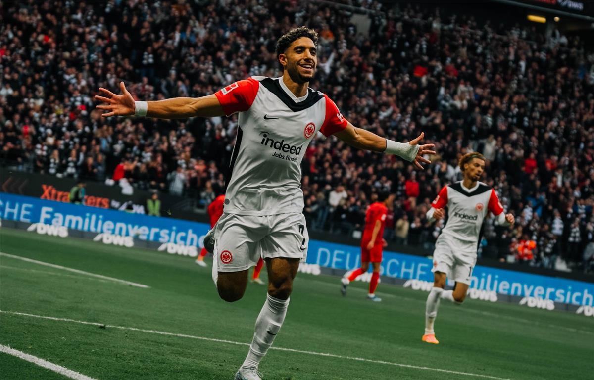 سجل الدولي المصري عمر مرموش هدف التعادل لفريقه آينتراخت فرانكفورت في مرمى بايرن ميونخ، خلال المباراة التي تجمع بينهما اليوم على ملعب دويتشه بانك.