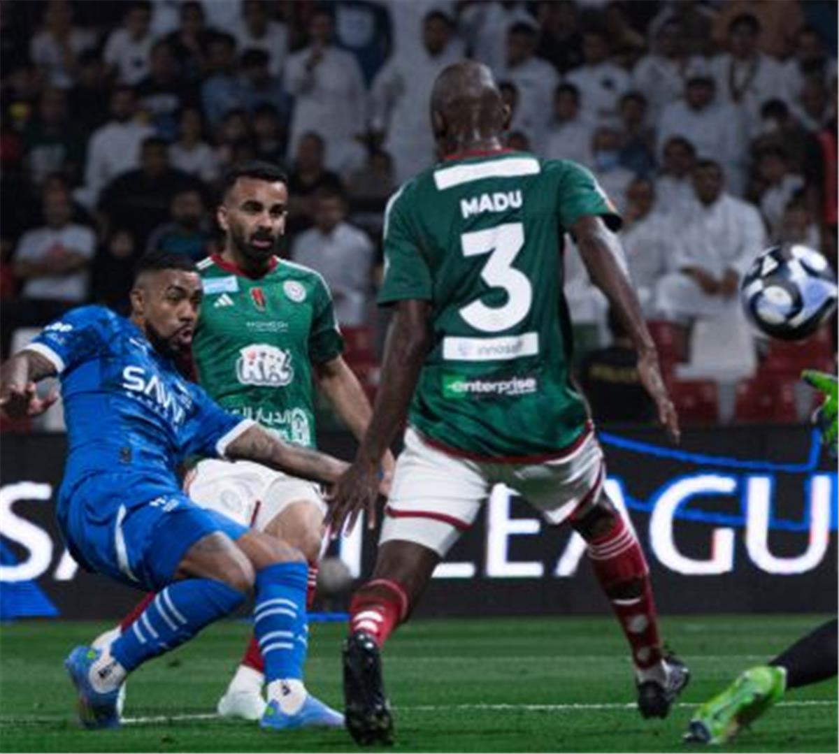 وسجل جواو كوستا هدف الاتفاق الأول في الدقيقة 45+5، بعد كرة ارتدت من دفاع الهلال قابلها كوستا بتصويبة صاروخية من خارج منطقة الجزاء سكنت الشباك.