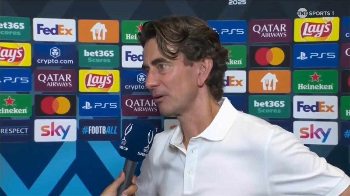تحدث توماس فرانك مدرب توتنهام هوتسبر بعد خسارة لقب السوبر الأوروبي امام باريس سان جيرمان بركلات الجزاء الترجيحية بعد انتهاء شوطي اللقاء بالتعادل الإيجابي بهدفين لمثليهما.
