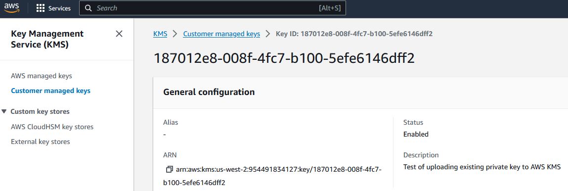 // Here's a screenshot of our private key AWS KMS:
